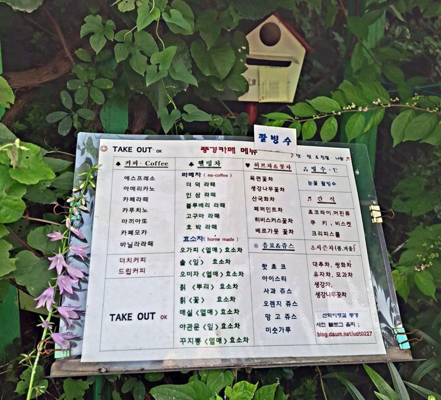 | 참고사항 | 산막이마을과 괴산에서 궁금한 여행거리를 카페지기에게 물어보세요. 마을에서 재배/채취된 재료로 만드는 웰빙차, 그날의 추천을 요청해보세요. |