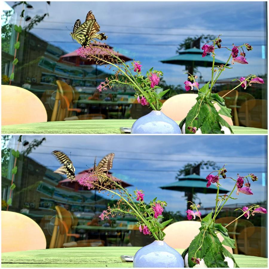 테이블 위의 소품까지, 호랑나비 놀다 가는 들꽃을 올려두셨어요.