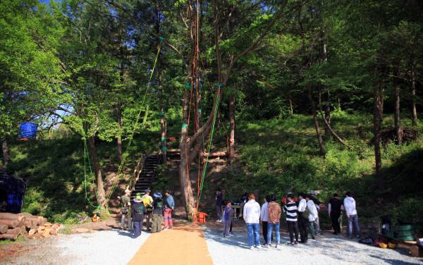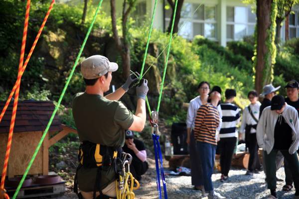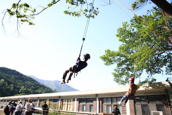 숲놀이터 3종 세트는 초보에 있어 익스트림 액티비티 영역이에요. 이 곳을 설계한 스태프 여러명이 투입되어야 해요. 그래서 소수 인원 진행은 어렵고 10인 전후 단체가 이용하기 좋은 체험이에요.