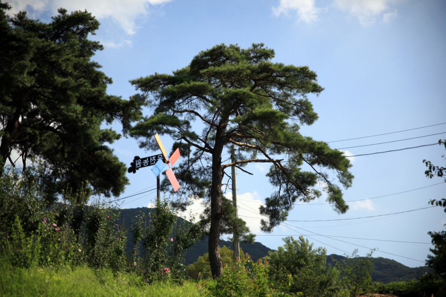 시골에서 문명의 편의시설을 즐길 수 있는 괴산 자연드림파크의 끝자락, 지곡저수지 방향으로 이동하면 도보로 운천농원의 언덕 꼭대기에 도착할 수 있어요.