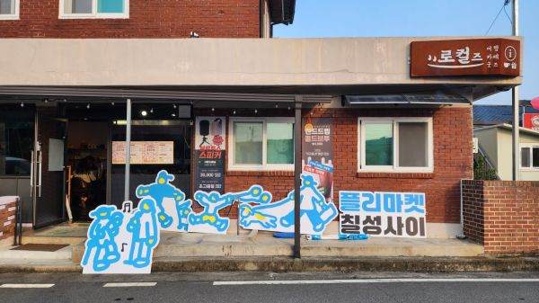 얼마 후 7월 26일 토요일, '청량마켓 칠성사이' 이름을 걸고 폭염 재난문자를 지워가며 칠리단 청년들 중심으로 첫 플리마켓이 열렸어요. 칠리단 청년들이 뒷골목 마켓으로 나오면서 비워진 상점들에는 에어컨을 빵빵하게 켜고 무더위 쉼터로 무인 개방하는 센스가 특히 돋보였죠.